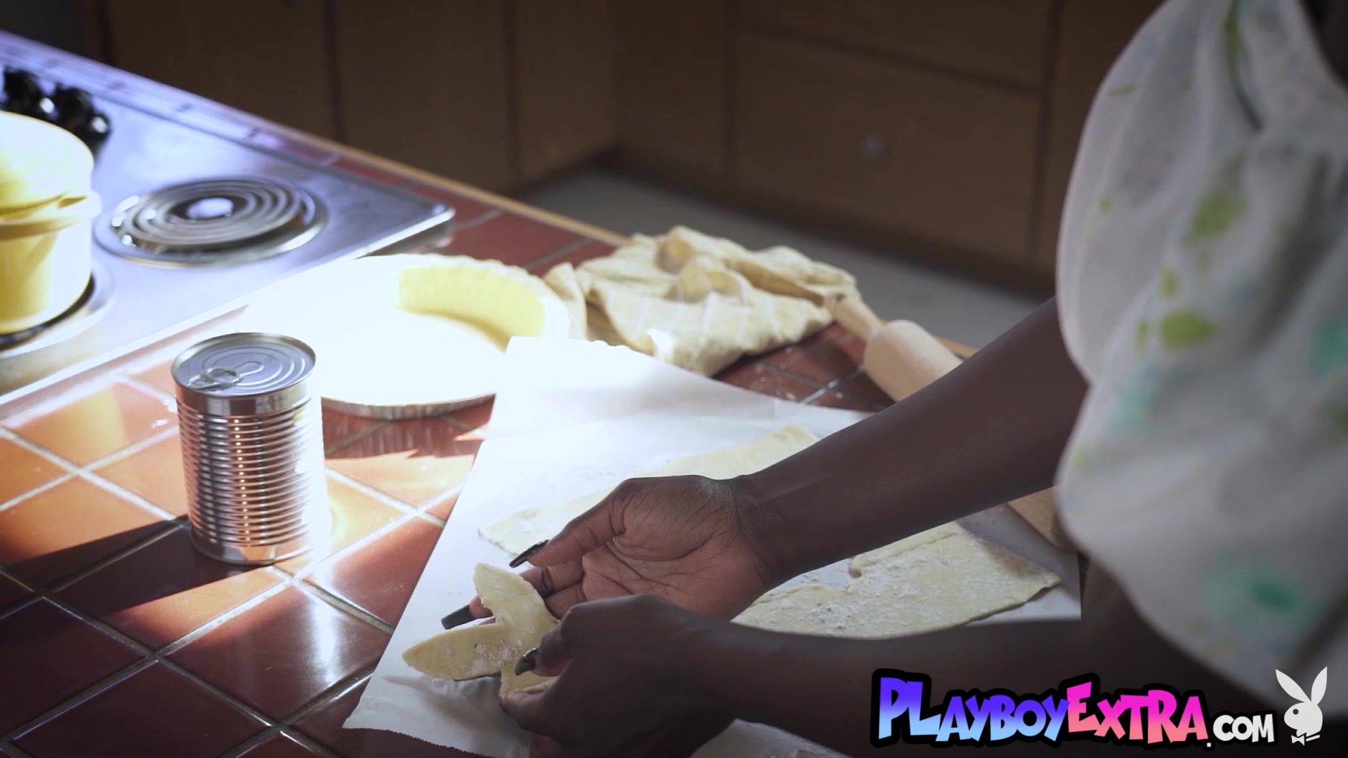 Glamorous ebony teen named Victoria Antoinette with hot natural tits is slips out of her sexy outfit during cooking thenthe naked black babe introduces her fresh dark pussy for Playboy while the pie is being ready