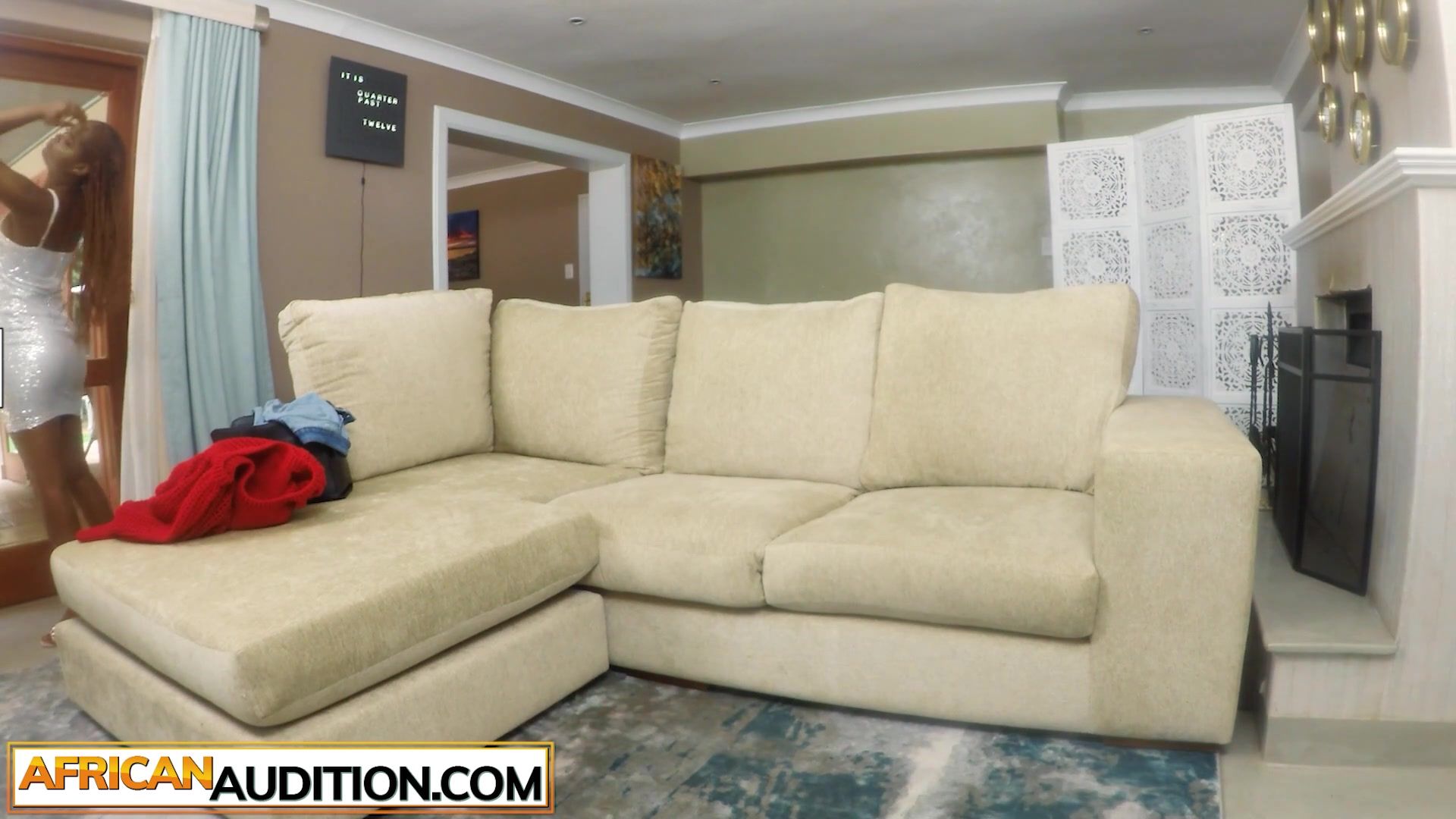 Big booty black girl rides a big white cock on amateur casting